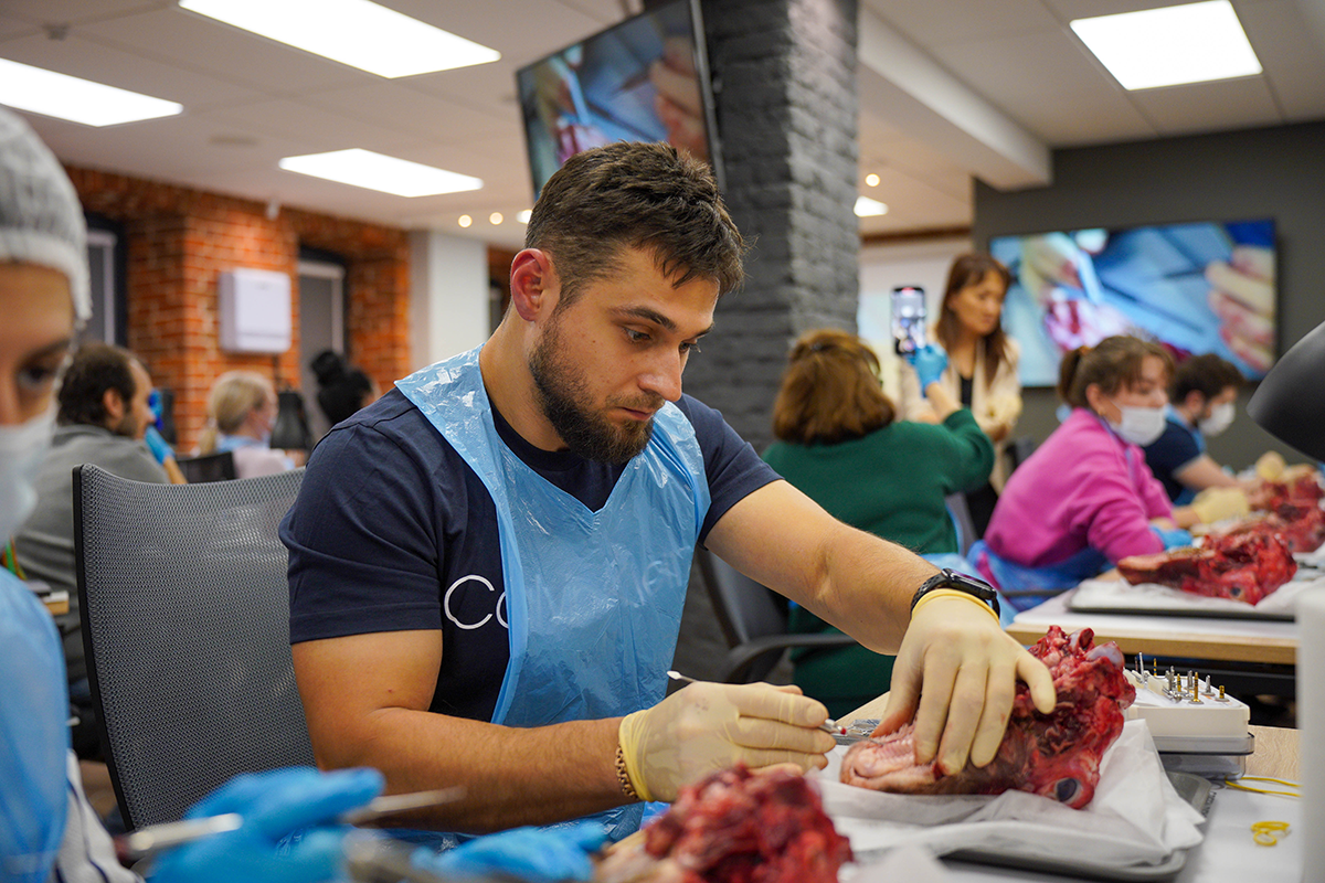Не исключено, что после просмотра видеоотчёта с двухдневного практического курса Кирилла Барышникова и Романа Вольберга можно подумать иначе. Но не спешите пугаться, это всего лишь био-фантомы, на которых участники курса отрабатывали полученные навыки по имплантации.