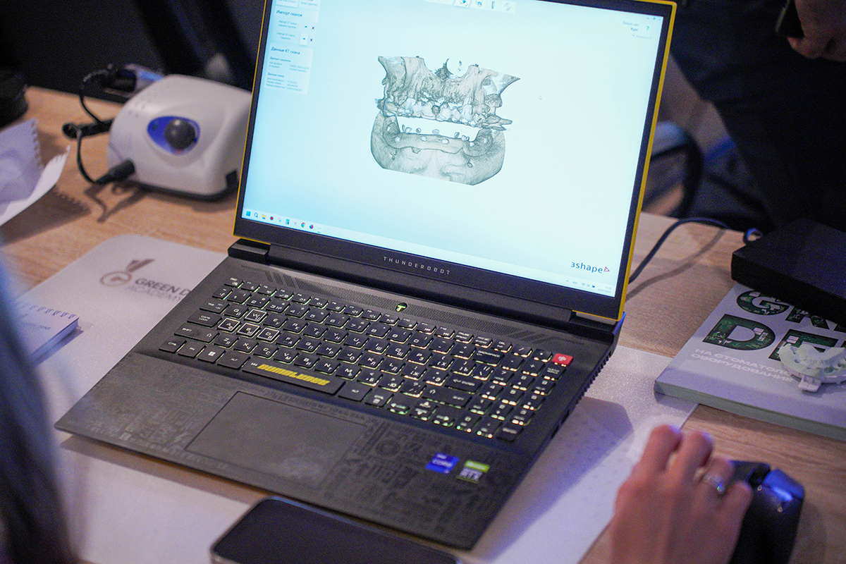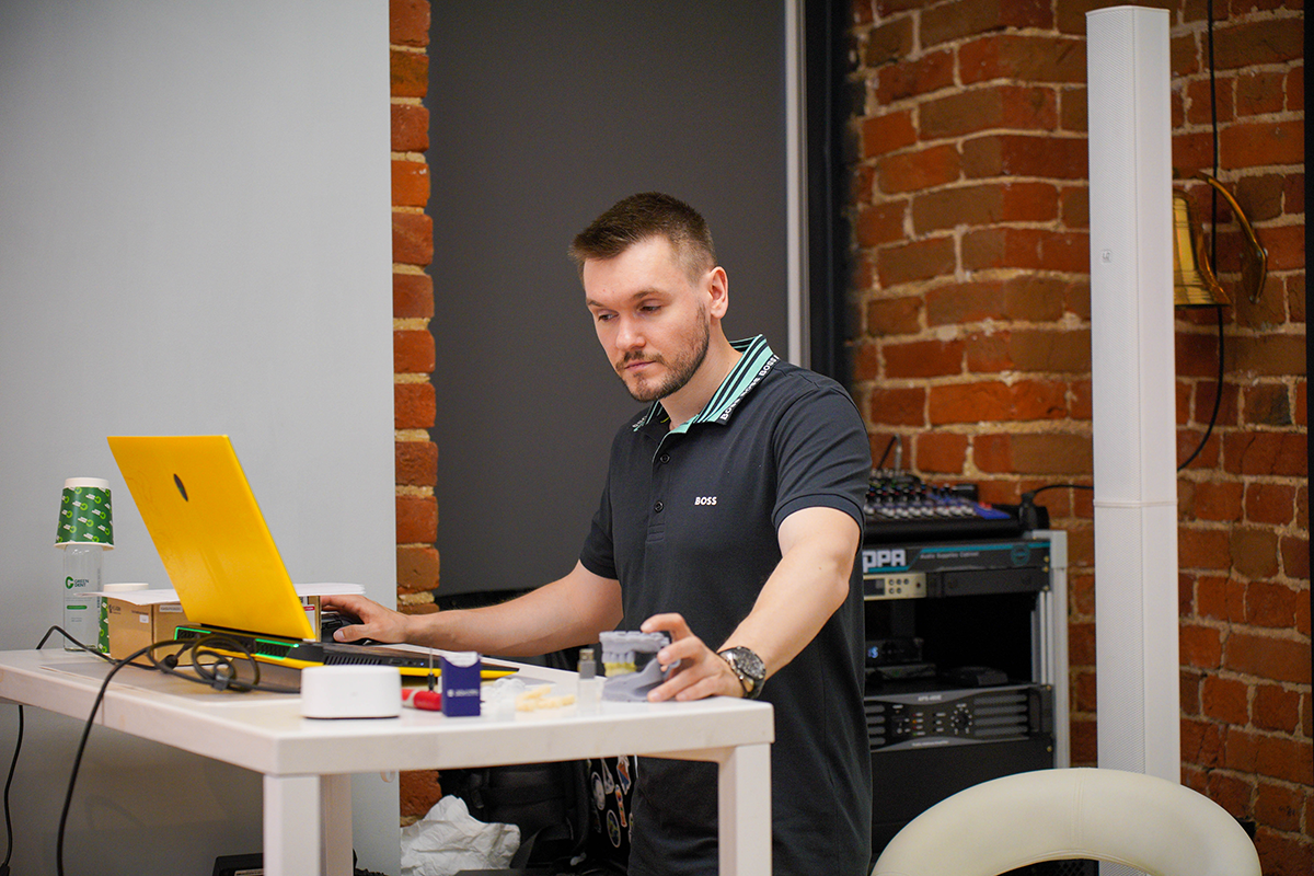 А затем участники курса отрабатывали полученные навыки на практике, моделируя хирургический шаблон в программе 3Shape Implant Studio и устанавливая его на модели.