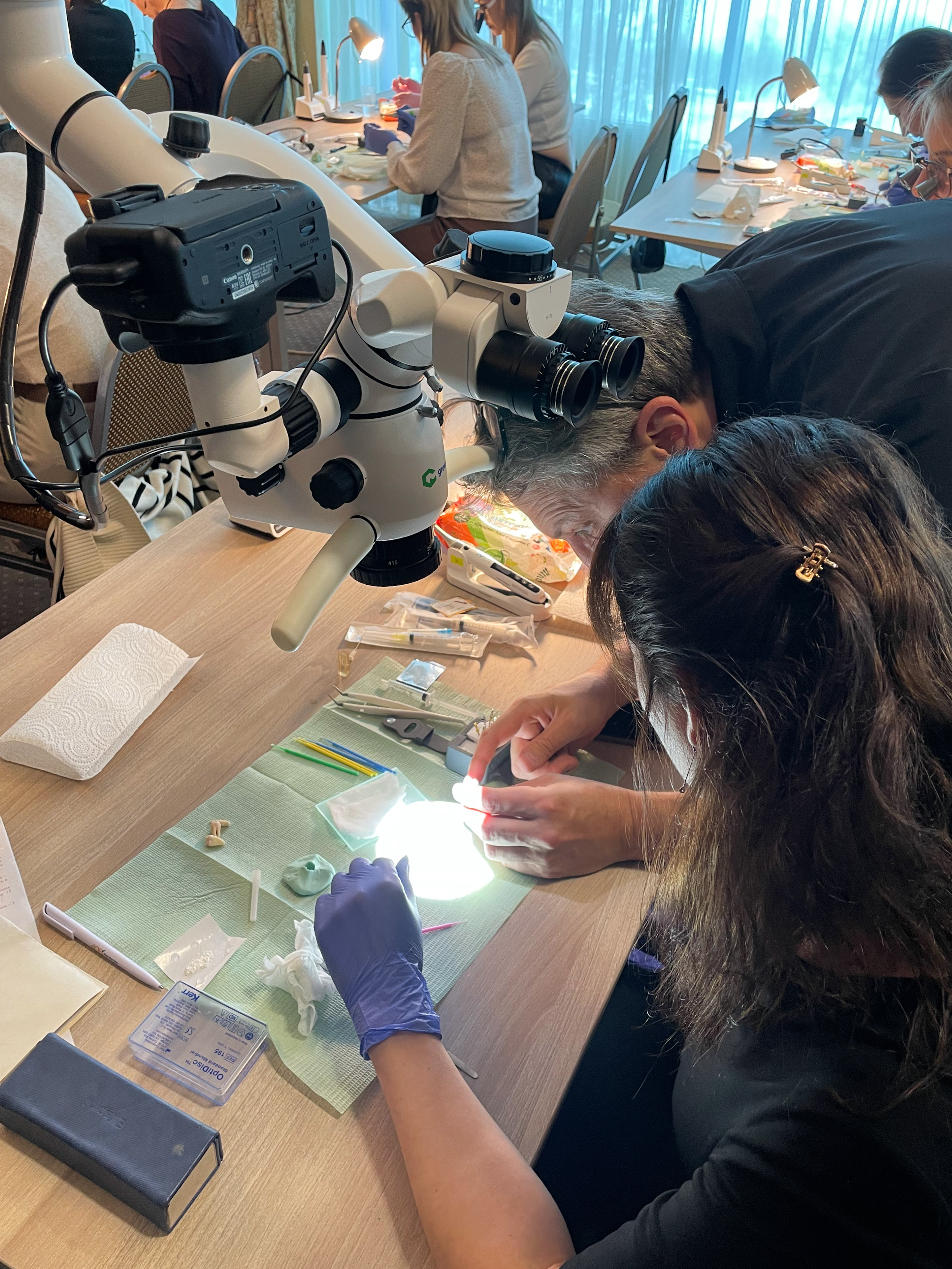 Подробнее об этом рассказывал Алексей Болячин на своём курсе «Перелечивание перелечиваний», а его участники отрабатывали полученные навыки на микроскопах компании GREEN DENT.