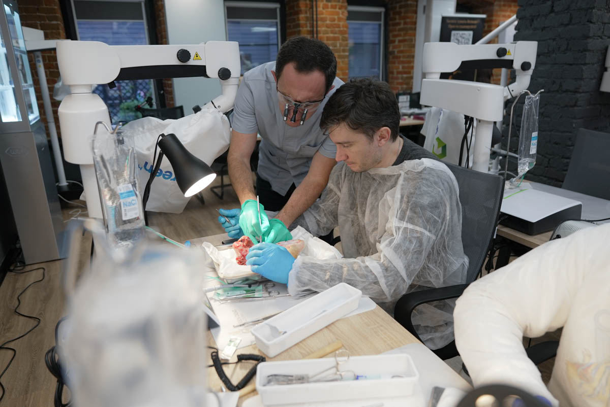 Всего за 2 дня они освоили одну из самых надёжных хирургических процедур и разобрали все её аспекты на практике: от забора костной ткани до фиксации. Кроме того, они научились проводить открытый синус-лифтинг и отработали полученные навыки на био-фантомах.