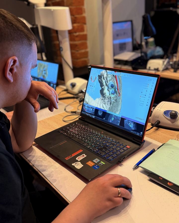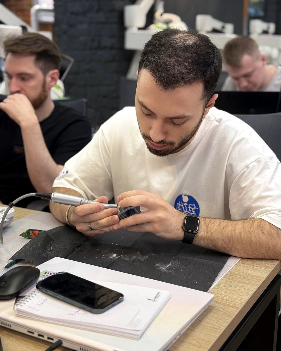 После насыщенной теории, они на практике отработали моделирование шаблона, коронки и абатмента, а также провели установку имплантатов через шаблон с немедленной нагрузкой.